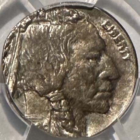This rare Buffalo Nickel off-metal was discovered and certified in late 2025. It was in an old-time mint error collection with a few other rare off-metal type coins. It is in gem mint state condition, fully struck, with light original toning and incredible luster.