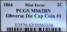 Major mint errors in the 2¢ series are very rare. This super deep obverse die cap mated set came from a major mint error collection that was assembled over 30 years ago. The obverse die cap is so deep it did not fit in a PCGS slab but was authenticated and has the official PCGS insert and photo proof.