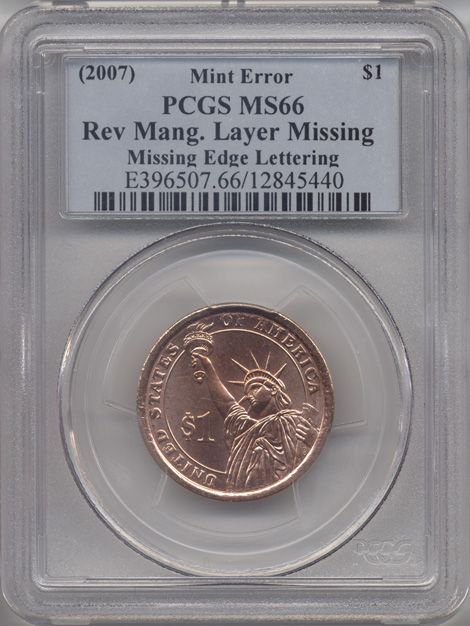 The Missing Edge Lettering discovery on the George Washington Presidential Dollar was the biggest news story of 2007. Mint Error News has published a special edition of the magazine showcasing the Washington Dollar Missing Edge Lettering mint errors which can be viewed on minterrornews.com. Presidential Dollars featuring John Adams, the second president, were also discovered with the Missing Edge Lettering.