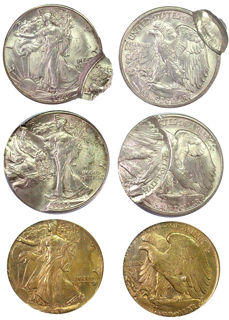 This trio of Walking Liberty Half Dollar mint errors is quite possibly the most impressive that has ever been offered. All three pieces are extremely rare, and together as a group, they present a once in a lifetime opportunity for the serious mint error collector.
