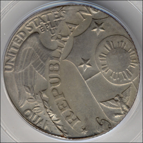 It is a large coin and there are few major mint errors known on this denomination. Somehow a struck U.S. Quarter was overstruck off-center by the Philippine 1 Piso dies. It is a spectacular and dramatic major mint error and it is extremely rare.