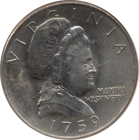 There is one set of a Dime, Quarter and Half struck by Martha Washington dies that are permanently housed in the Smithsonian Institute, embedded in blocks of lucite. According to United States Pattern and Related Issues, by Andrew W. Pollock III, “the only trial pieces purported to have survived metallurgical testing in 1965 were the Dime, Quarter Dollar, and Half Dollar equivalent strikes in copper-nickel clad over copper.”
