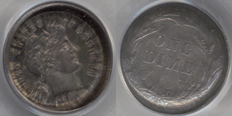 1895-O Barber Dime - Obverse Die Cap - PCGS MS 64