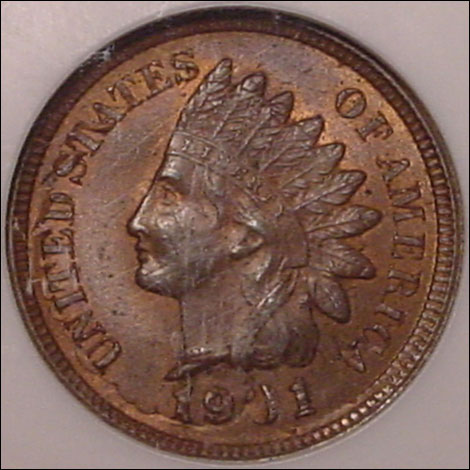 This 1901 Indian Cent is a flipover double strike. It is very dramatic since much of the detail from the second strike is visible on both sides. Flipover errors are highly collectible since you are viewing both designs on the same side of the coin.