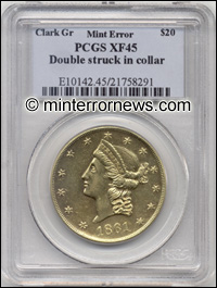 Since it is double struck with some rotation between the two strikes, it is a spectacular and rare major mint error. It would be the centerpiece of any U.S. error collection. There are 2 or 3 known Clark Gruber $20 gold pieces struck over Assay pieces, but that was done deliberately and is considered an overstrike and not a mint error.