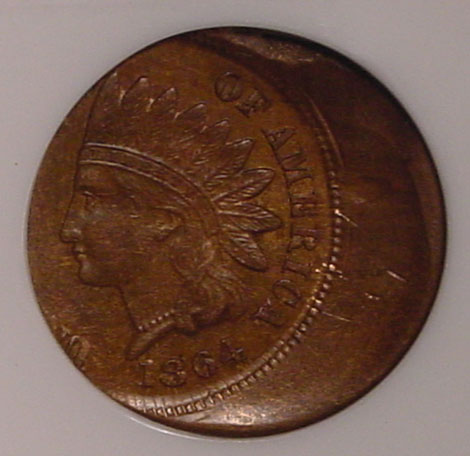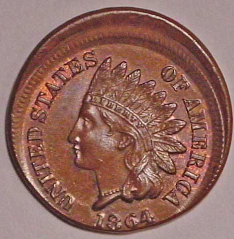 1864 Indian Cent Struck 10% Off Center at K-6.