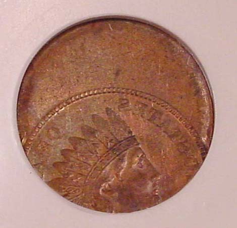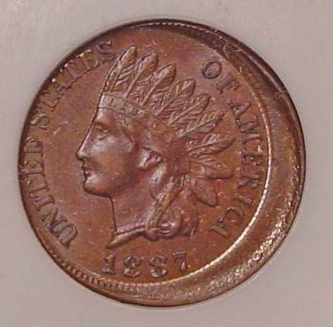 1887 Indian Cent Struck 10% Off Center at K-9.