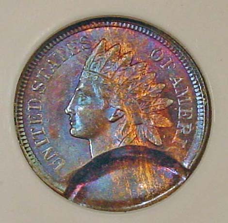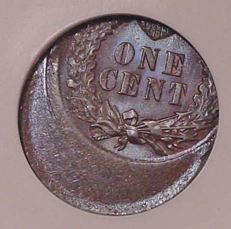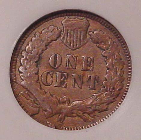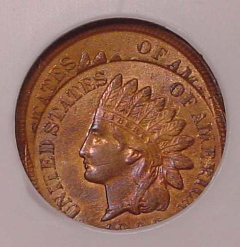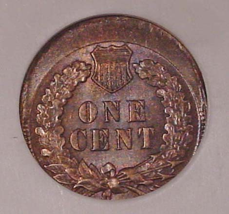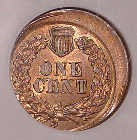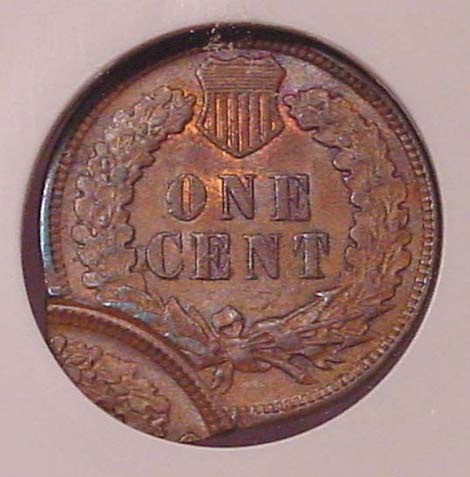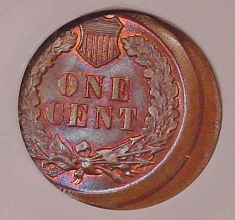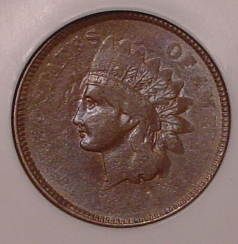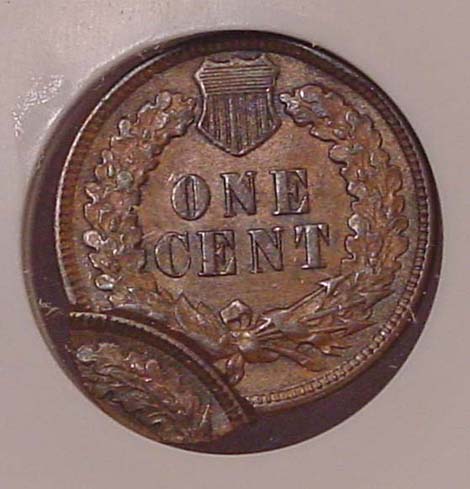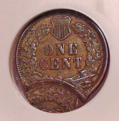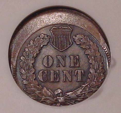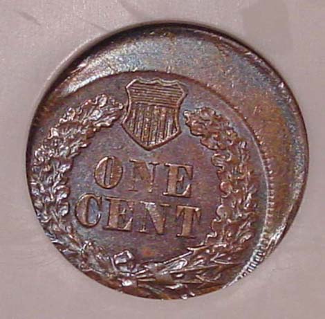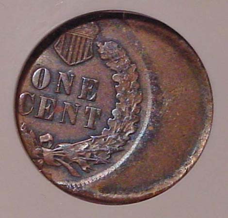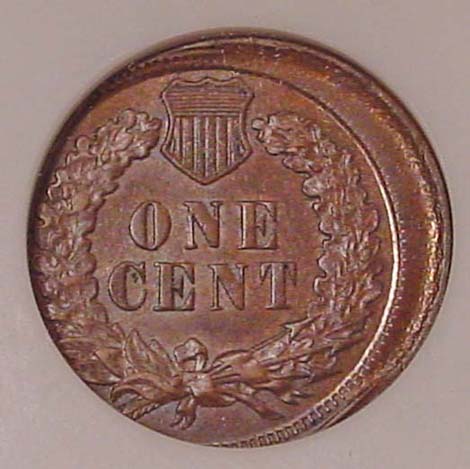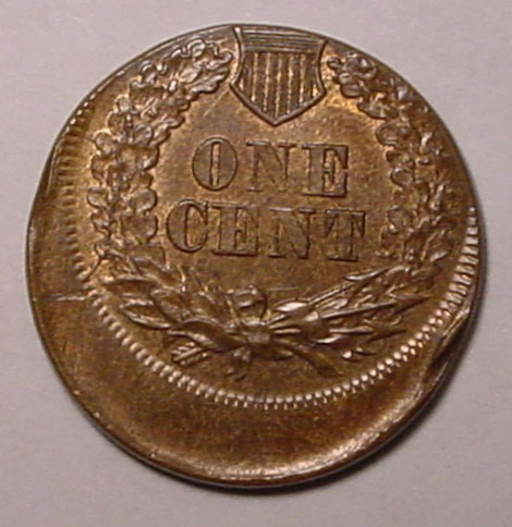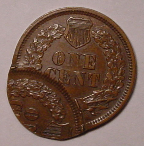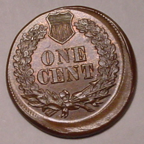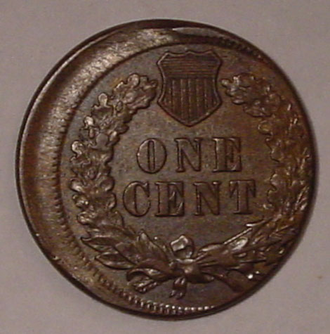 (1864-1909) Indian Cent Struck 35% Off Center with Mirror Brockage on Reverse.
