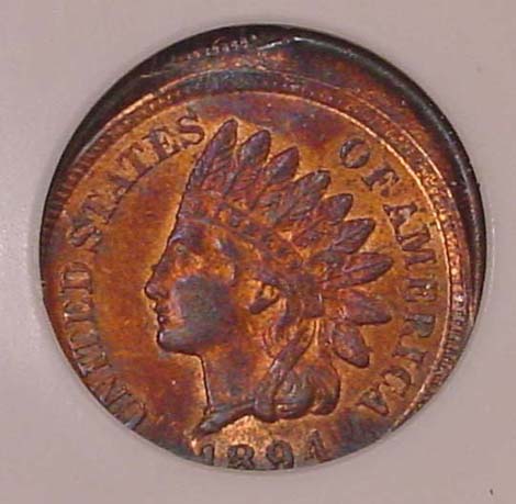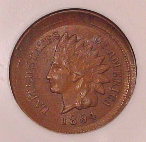 1894 Indian Cent with 90% Obverse Indent.
