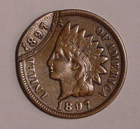 1897 Indian Cent Struck 10% Off Center at K-5.