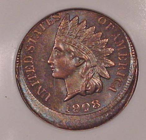 1908 Indian Cent Struck 10% Off Center at K-12.