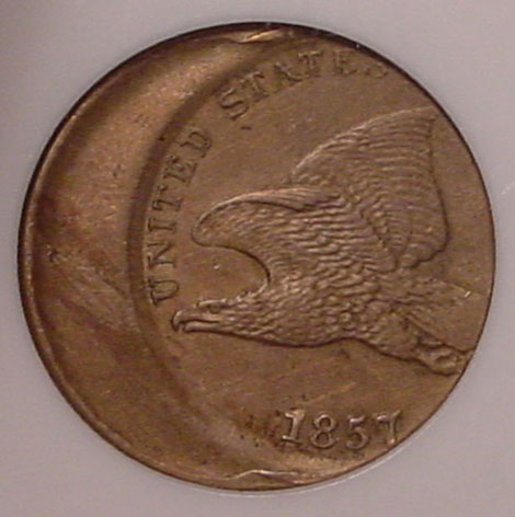 1857 Flying Eagle Cent Struck 25% Off Center at K-3.