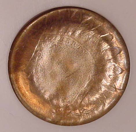 1900 Indian Cent Multi-Struck 20% Off-Center at K-3 on a Silver 10 Cent Planchet Intended for a Barber Dime. 2.5Gr.