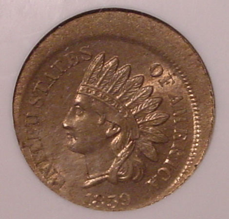 1864 Indian Cent Centered Broadstruck on a Type 1 Planchet.