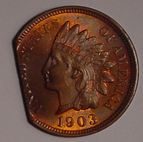1903 Indian Cent with 10% Curved Clip at K-5. 2.84GR.