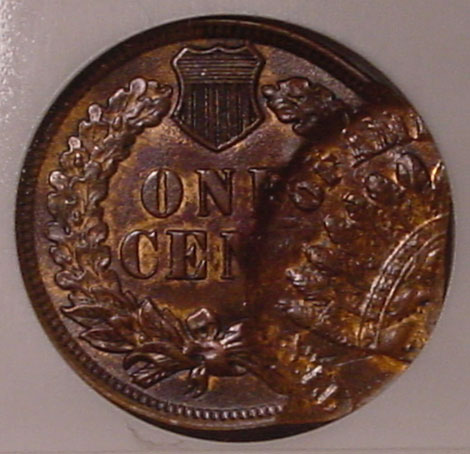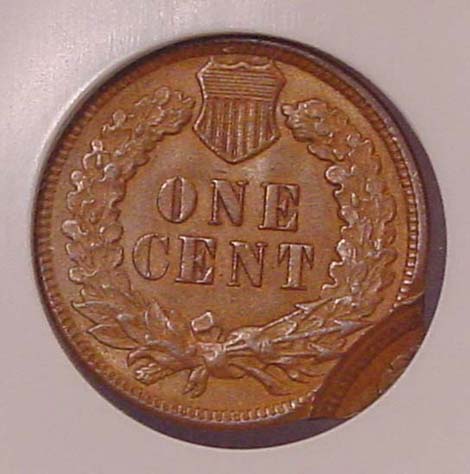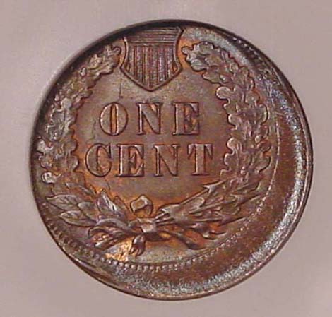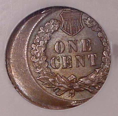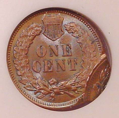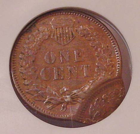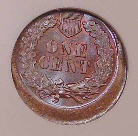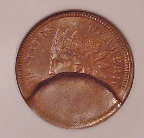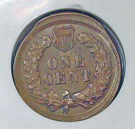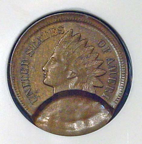 (1864-1909) Indian Cent Obverse Struck Through Capped Die.