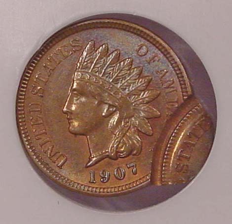 1907 Indian Cent with Reverse Struck Thru Capped Die.