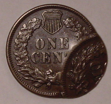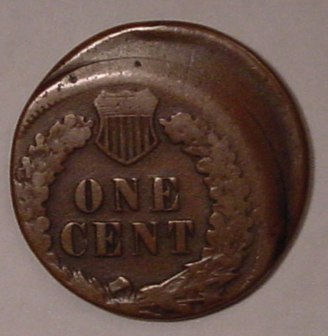 (1864-1909) Indian Cent with Obverse Struck Thru Capped Die. No Date.