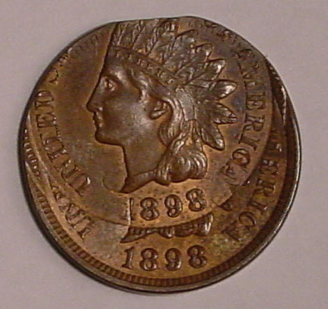 1898 Indian Cent with Obverse Struck Thru Capped Die.
