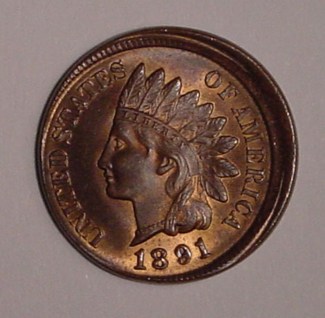 1891 Indian Cent Struck 15% Off Center at K-8.