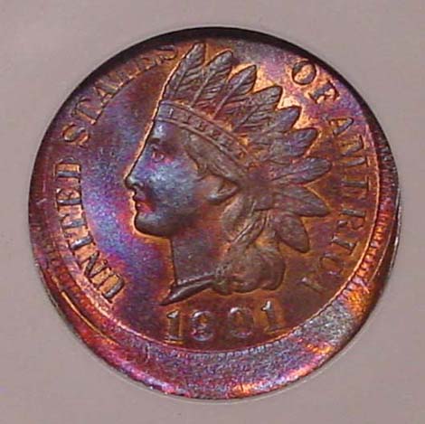 1891 Indian Cent Multi-Struck. First Strike on Center. Multiple Strikes 20% Off Center at K-3.