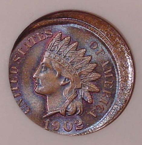 1902 Indian Cent with 10% Curved Clip at K-10.