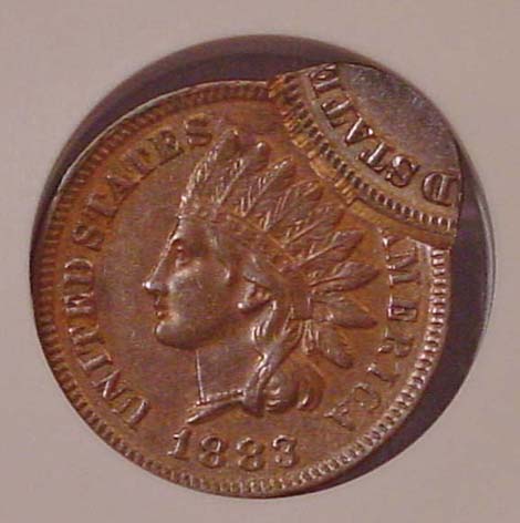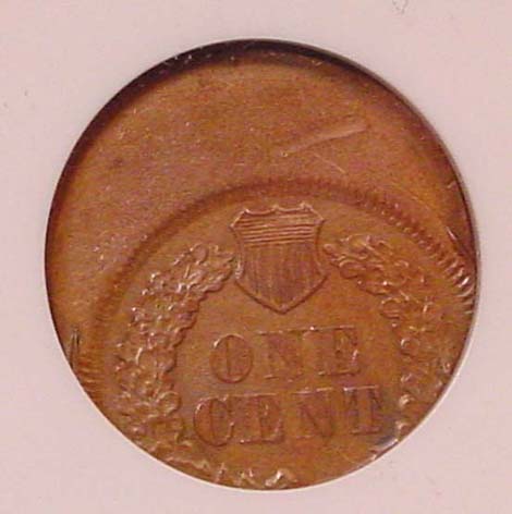 1867 Indian Cent Struck 35% Off Center at K-1.