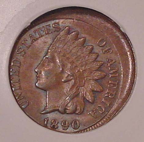 1890 Indian Cent Struck 10% Off Center at K-8.