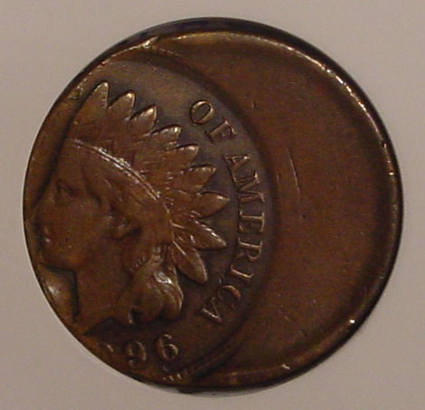 1896 Indian Cent Struck 35% Off Center at K-9.