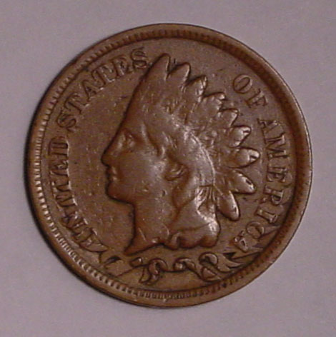 (1864-1909) Indian Cent with 45% Obverse Indent at K-7. No Date.