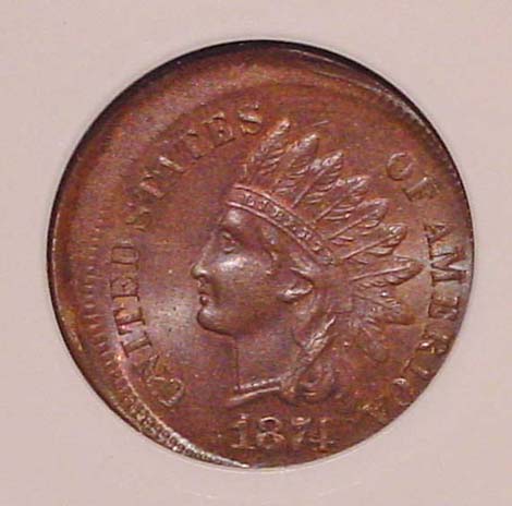 1874 Indian Cent Struck 10% Off Center at K-5.