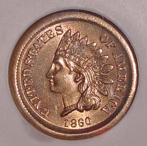 1860 Indian Cent Centered Broadstruck on Type 1 Planchet.