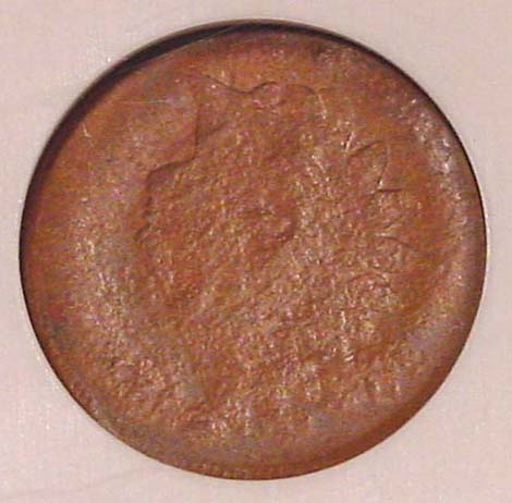 1866 Indian Cent Struck 20% Off Center at K-6.