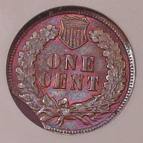 1905 Indian Cent with Double Curved Clips. 10% at K-1 and 1% at K-4.