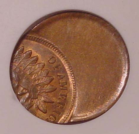 1907 Indian Cent with 15% Straight Clip at K-8. 2.7GR.