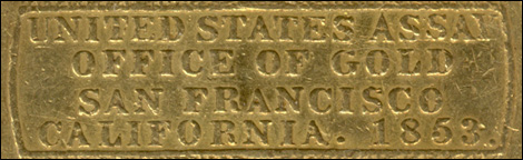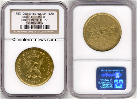 1853 U.S. Assay $20 Gold Piece Certified as Double Struck by NGC
