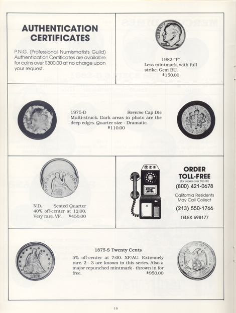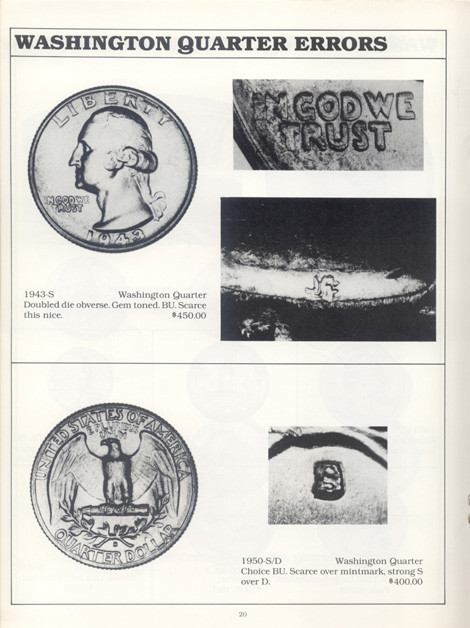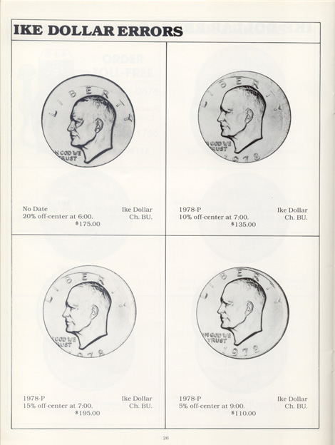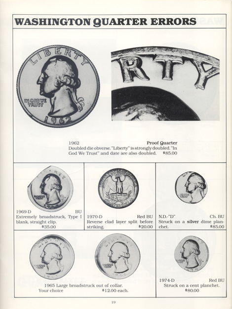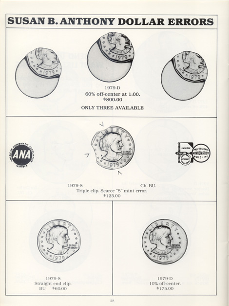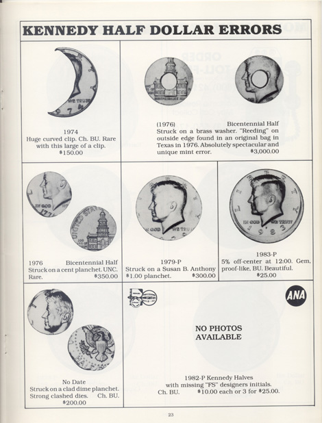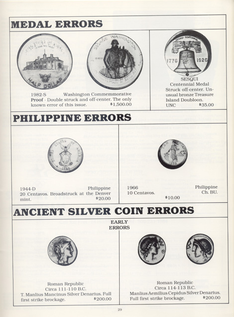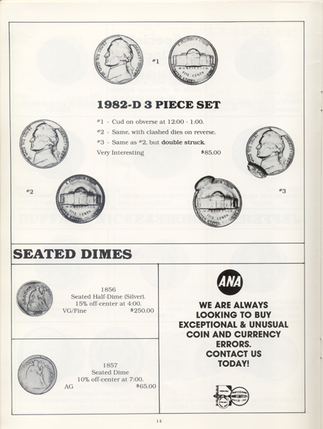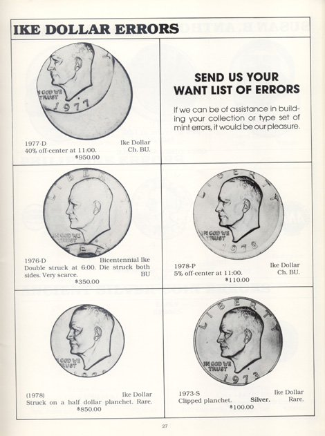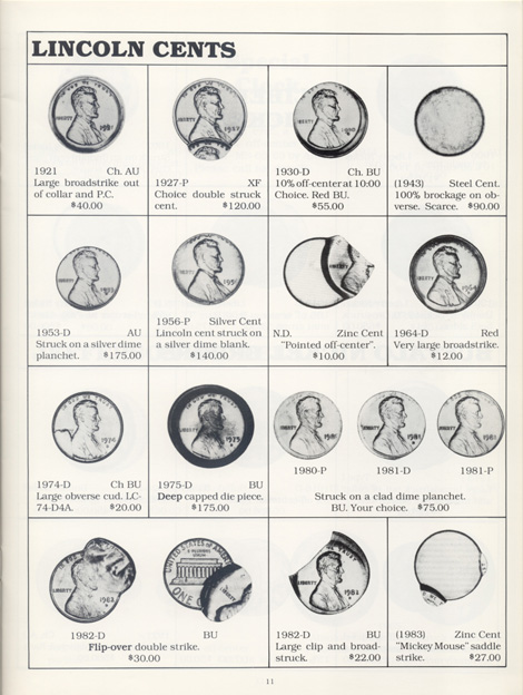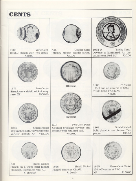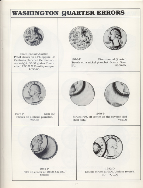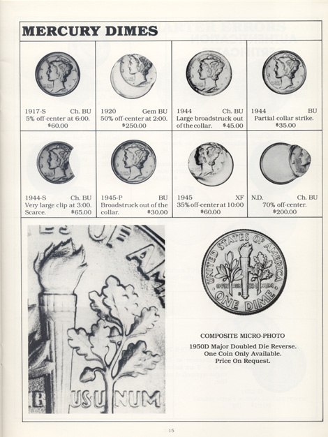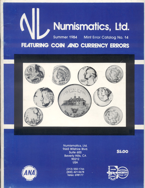 Here is another in a series of Mint Error Catalogs from Fred Weinberg when he was with Numismatics, Ltd. It is always exciting to compare current mint error prices with those from decades ago. Mint Error News Magazine thanks Fred Weinberg for sharing these with our readers.