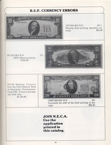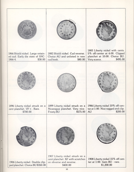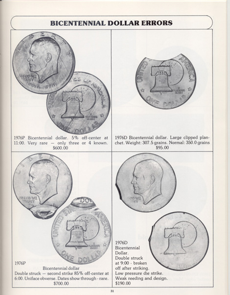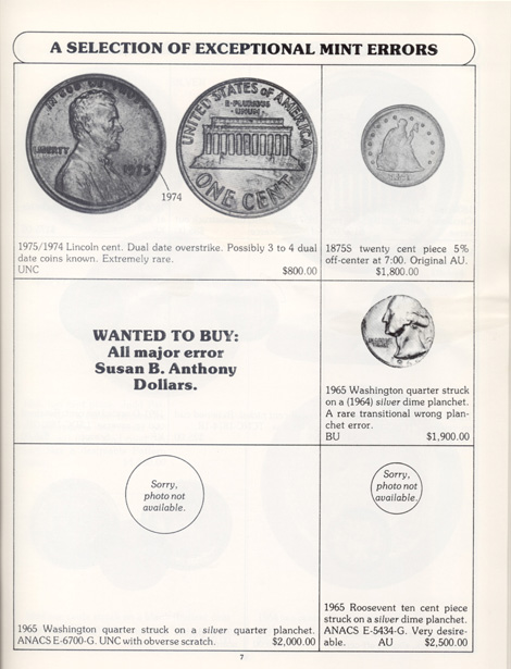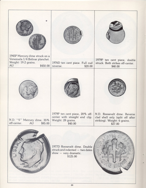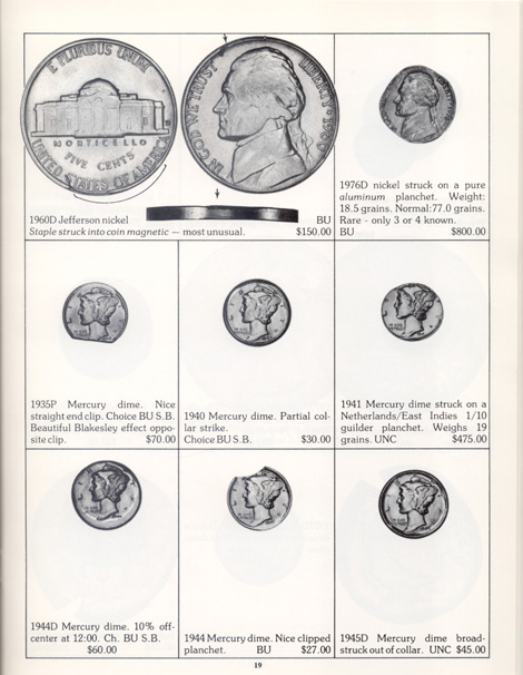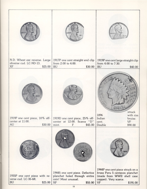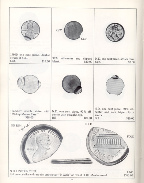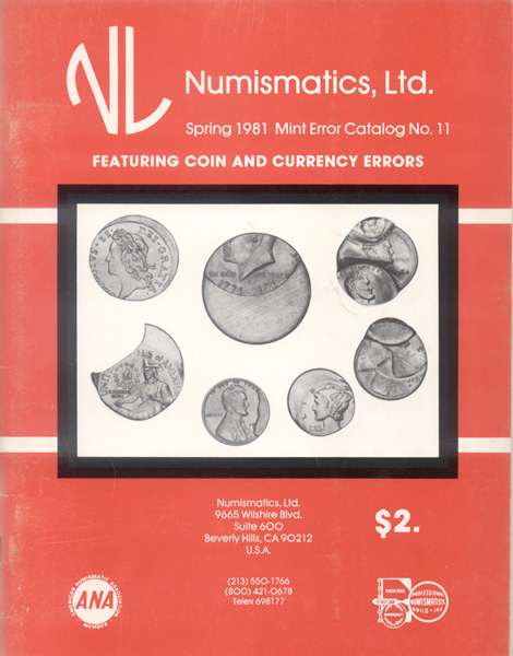 Here is another in a series of Mint Error Catalogs from Fred Weinberg when he was with Numismatics, Ltd. It is always exciting to compare current mint error prices with those from decades ago. Mint Error News Magazine thanks Fred Weinberg for sharing these with our readers.