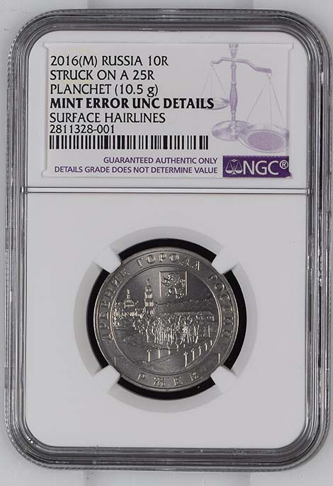 2016(M) RUSSIA 10R STRUCK ON A 25R PLANCHET (10.5 g)