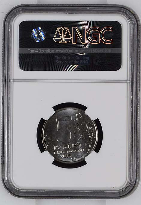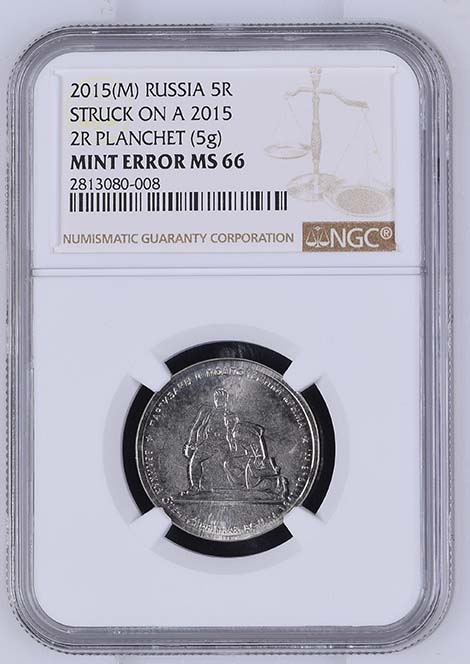 2015(M) RUSSIA 5R STRUCK ON A 2015 2R PLANCHET (5g)