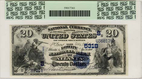Editor’s Note: Here are the finest known and unique pair of Double Denomination U.S. $20 & $10 National Bank Notes from 1882.