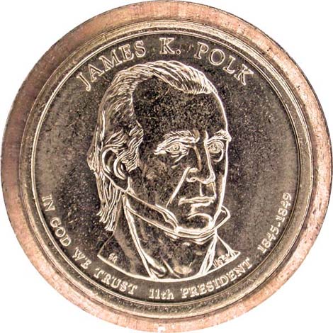 James K. Polk dollar, obverse, missing edge lettering.