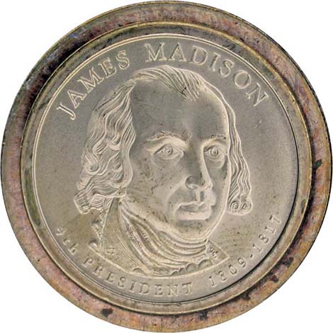 James Madison Dollar from Mint Set, obverse, missing edge lettering.