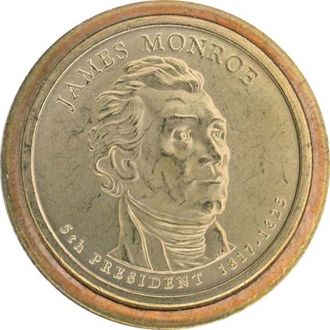 James Monroe Dollar from Mint Set, obverse, missing edge lettering.