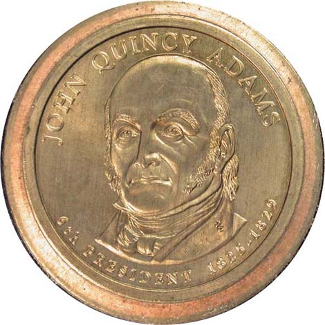 John Quincy Adams Dollar from Mint Set, obverse, missing edge lettering.