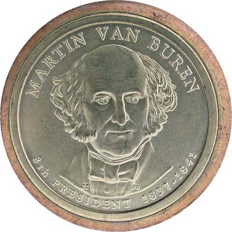 Martin Van Buren Dollar from Mint Set, obverse, missing edge lettering.
