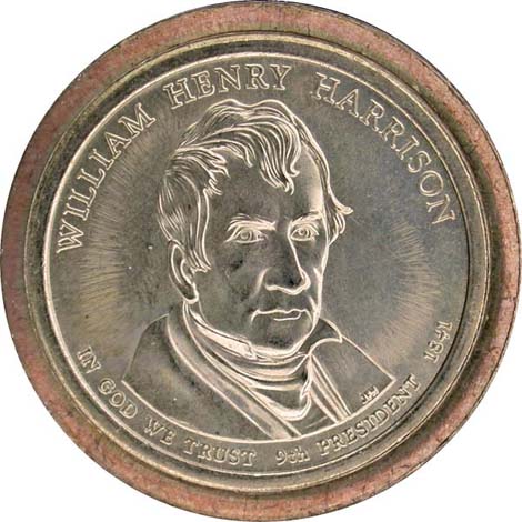 William Henry Harrison Dollar, obverse, missing edge lettering.