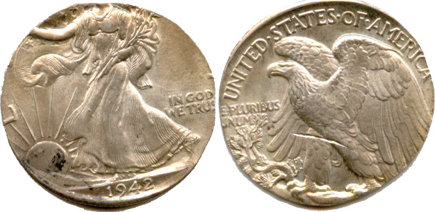 After a few minutes most of the coins turned out to be minor errors. But among the small number of coins were two Walking Liberty Half Dollars struck on Quarter planchets!