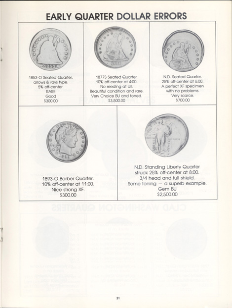 Here is another in a series of Mint Error Catalogs from Fred Weinberg when he was with Numismatics, Ltd. It is always exciting to compare current mint error prices with those from decades ago. Mint Error News Magazine thanks Fred Weinberg for sharing these with our readers.
