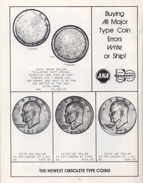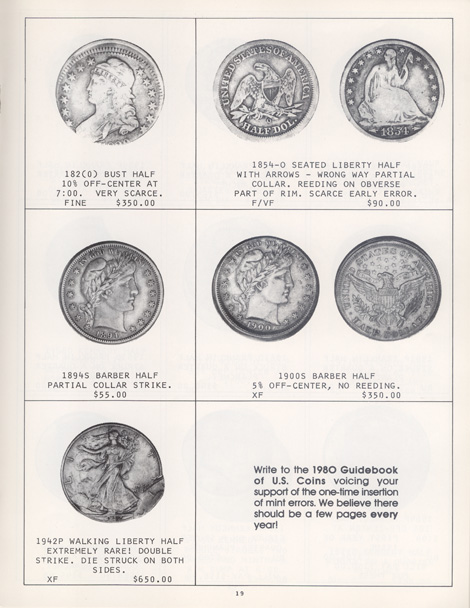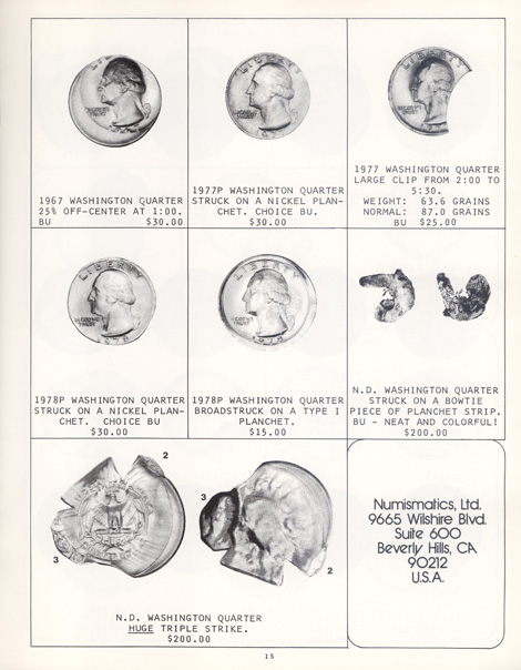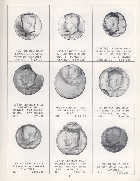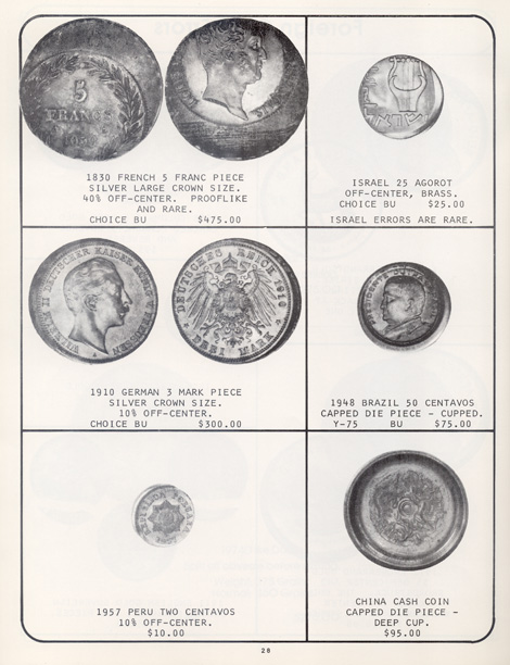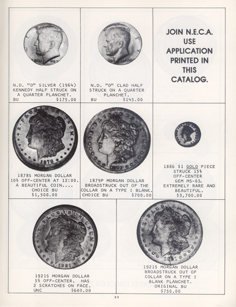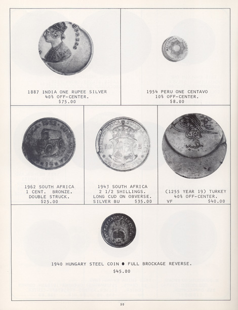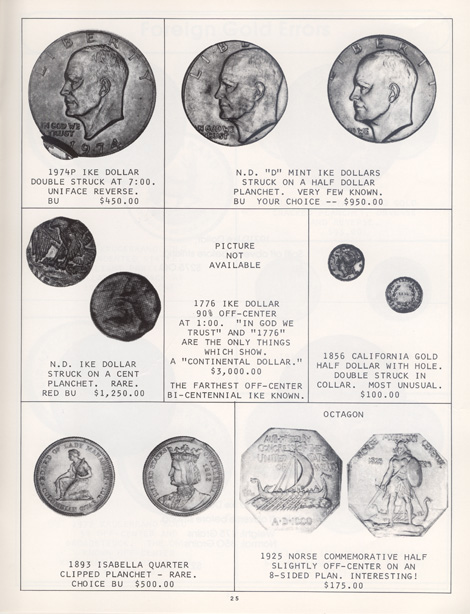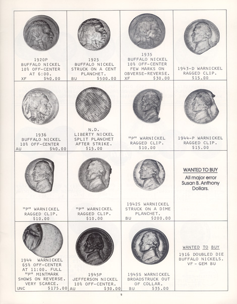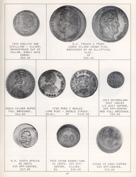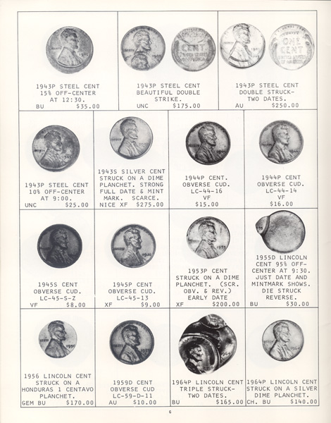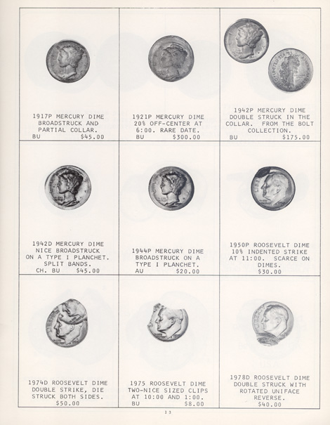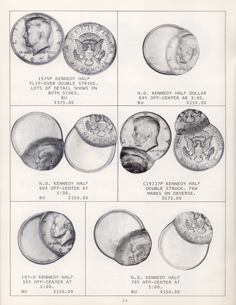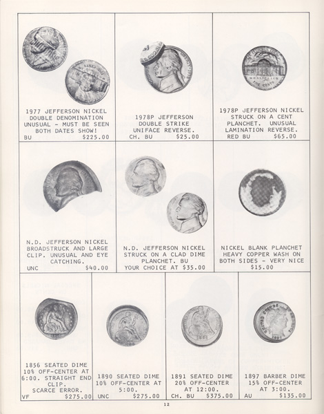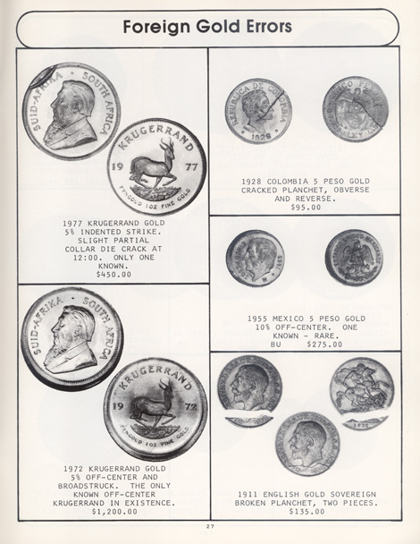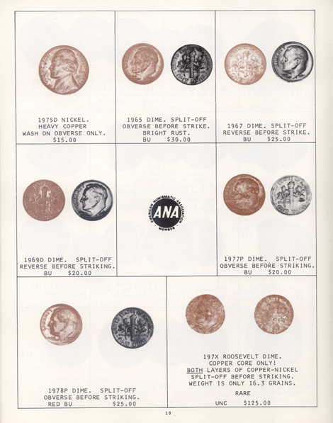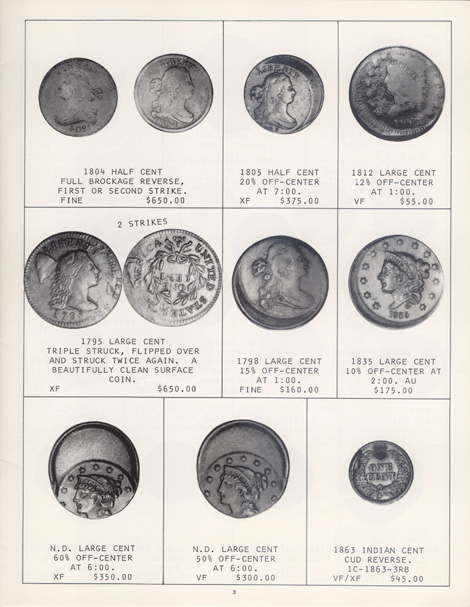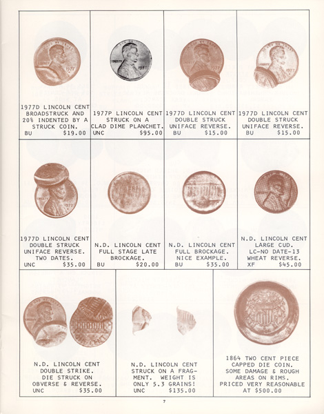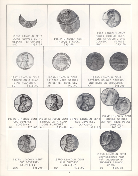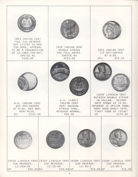 This is the first in a series of Mint Error Catalogs from Fred Weinberg when he was with Numismatics, Ltd. It is always exciting to compare current mint error prices with those from decades ago. Mint Error News Magazine thanks Fred Weinberg for sharing these with our readers.